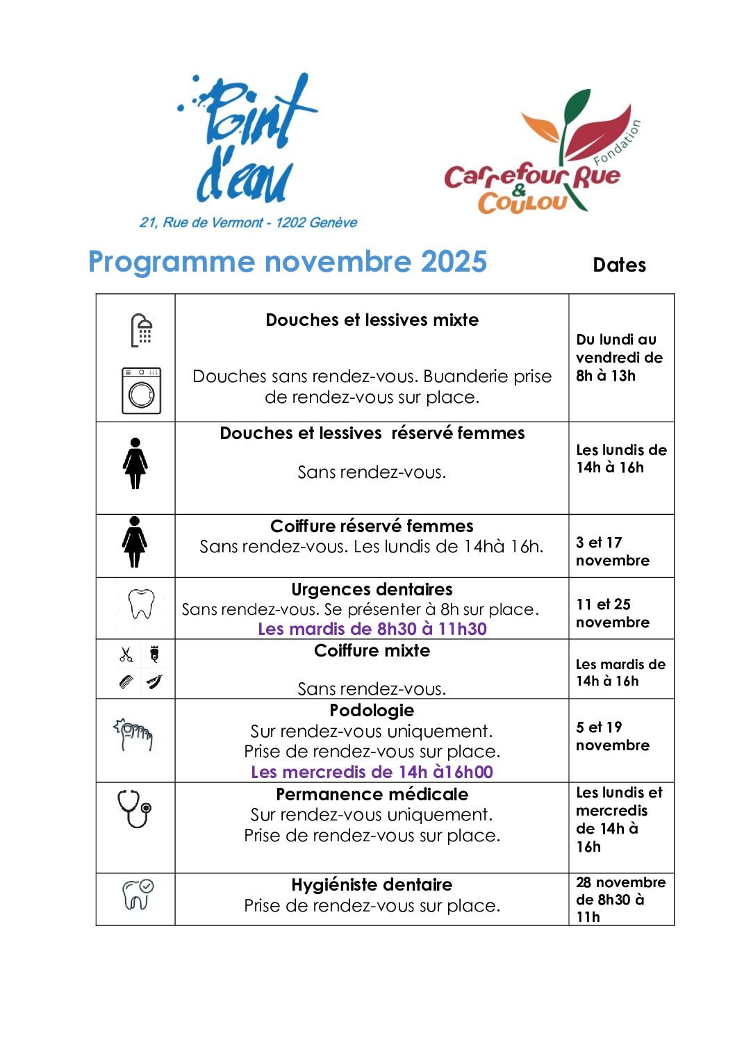 Point d’Eau programme novembre 2025